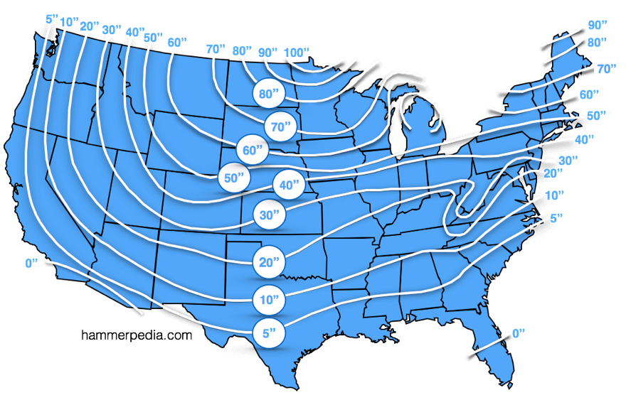 Frost Line Penetration Map In The U.S. - Hammerpedia